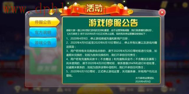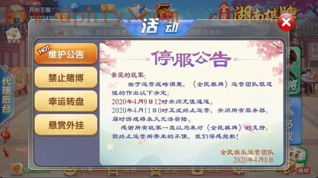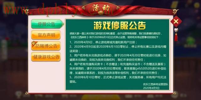 4月9日,《优乐江西麻将》停止充值和新用户注册,并表示在6月10日停运;