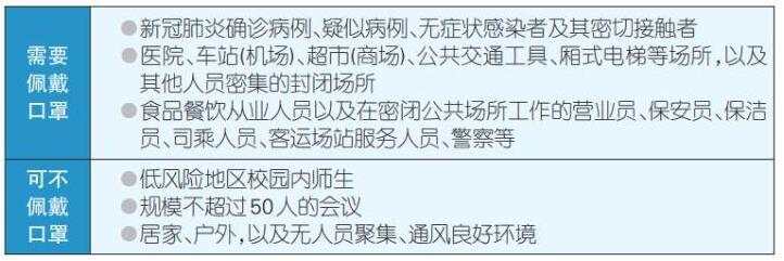 该《意见》由重庆市新型冠状病毒肺炎疫情防控工作领导小组发布。《意见》对不同场所是否佩戴口罩作出规定(见图表)。