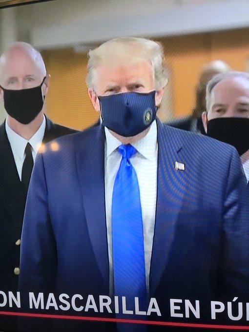 总统在周六(7月11日)访问美军事医院时戴上口罩,这是总统首次在公众场合被看到佩戴面部覆盖物类型,以防止新型新冠传播。