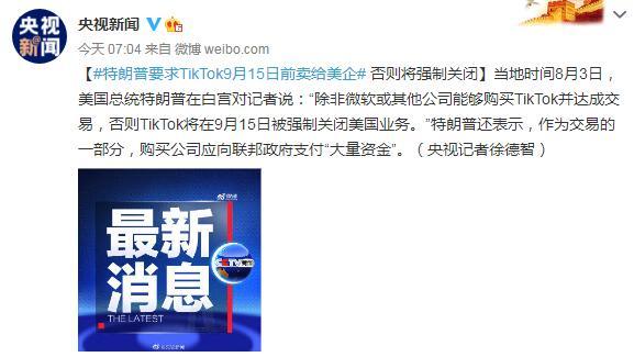 特朗普要求TikTok9月15日前卖给美企在美国当地时间8月3日,正当微软还在和Titok进行紧张而有序的收购协商时,特朗普不断给Tiktok施压。